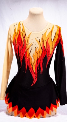 The spandex "flames" on this dress were patterned and cut by hand, from two different colours of spandex.